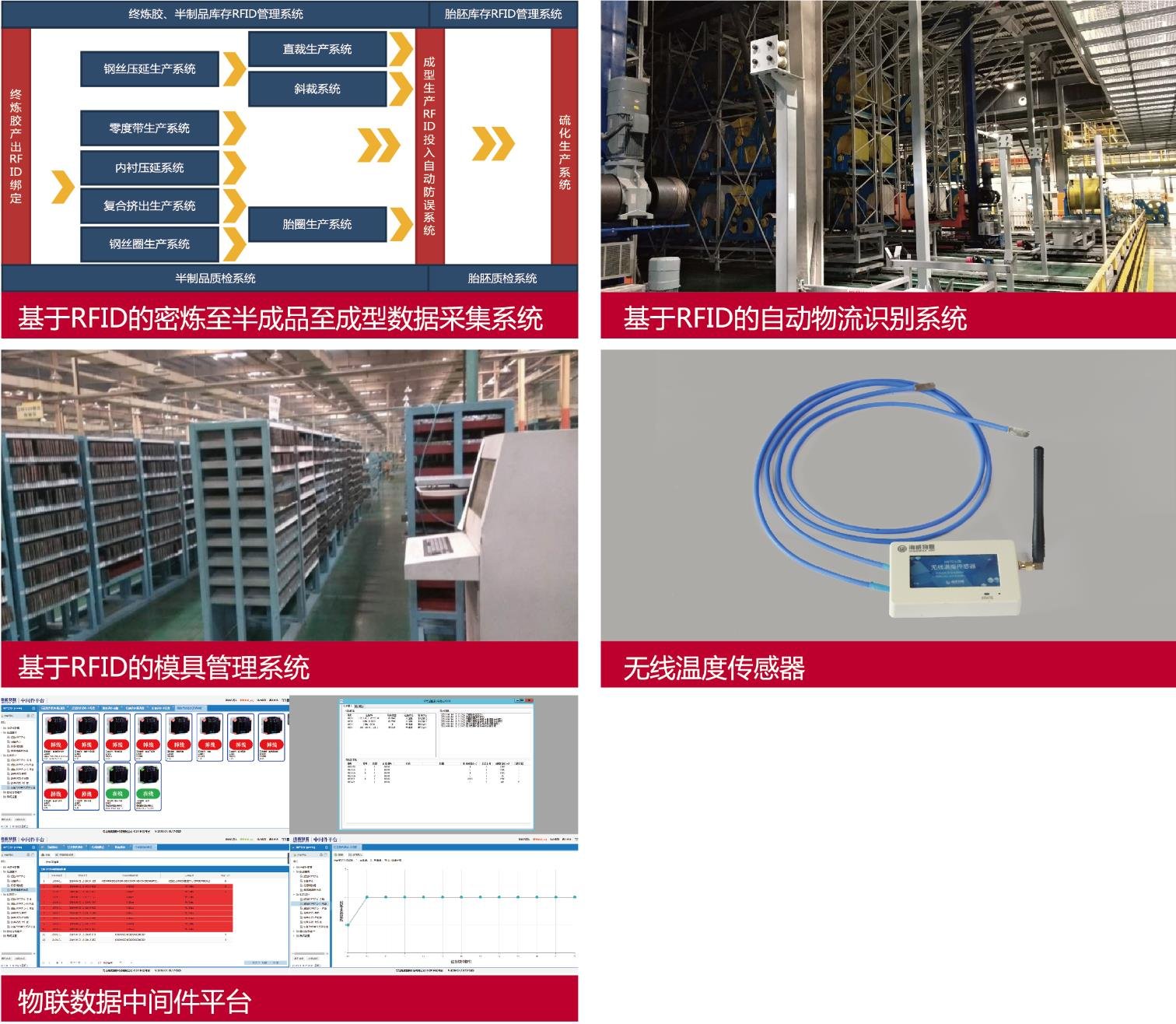 基于RFID的輪胎生產(chǎn)信息采集管控系統(tǒng)以RFID自動識別技術(shù)為主,集成各種物聯(lián)網(wǎng)技術(shù),實現(xiàn)輪胎生產(chǎn)過程中的工藝信息采集控制、物料信息采集控制、倉儲運輸信息采集控制等功能。包括基于RFID的密煉至半成品至成型數(shù)據(jù)采集系統(tǒng)、基于RFID的自動物流識別系統(tǒng)、基于RFID的模具管理系統(tǒng)、EPD、物聯(lián)網(wǎng)平臺等主要產(chǎn)品。