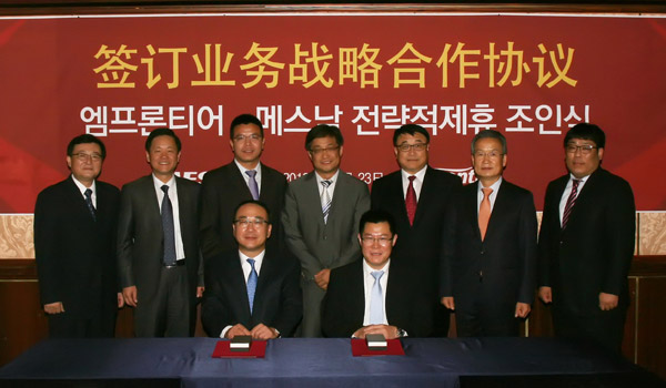 10月23日,軟控與韓泰輪胎全資子公司Emfrontier(EMF)公司在韓國(guó)首爾簽訂了旨在建立戰(zhàn)略合作伙伴關(guān)系的《合作意向書(shū)》,軟控常務(wù)副總裁鄭江家與EMF公司總經(jīng)理安在煥代表雙方簽約。雙方將在IT解決方案、工廠自動(dòng)化、物流自動(dòng)化三個(gè)領(lǐng)域內(nèi)展開(kāi)深度合作,在全球范圍內(nèi)共同開(kāi)發(fā)市場(chǎng)。