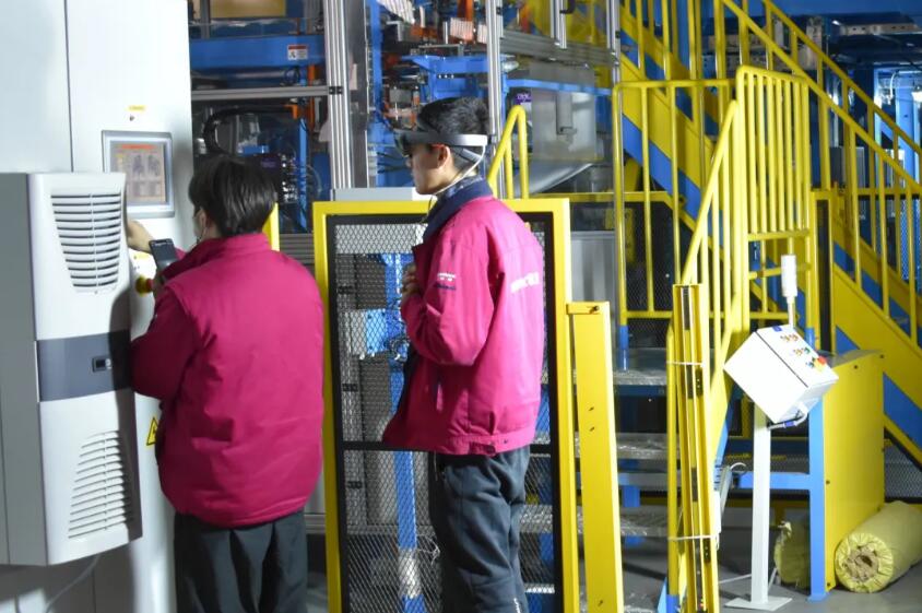 在具體操作過程中,軟控工程師由一人佩戴MR眼鏡,身處大洋彼岸的客戶通過網(wǎng)絡(luò)連接就可以在電腦上看到廠內(nèi)小料設(shè)備的實時全景,全面了解設(shè)備的整體情況及相關(guān)細節(jié)。負責(zé)此次驗貨的工程師介紹到:通過視頻對話,客戶與工程師進行實時溝通交流,了解設(shè)備的整體狀況、進行功性能展示等,客戶通過語音和編輯畫面對設(shè)備細節(jié)及關(guān)鍵點提出疑問,我方工程師團隊予以演示并給予專業(yè)解答。MR的高清晰、全方位的視頻畫面實時傳輸,使客戶技術(shù)人員如同身臨其境,達到實地勘驗的效果。